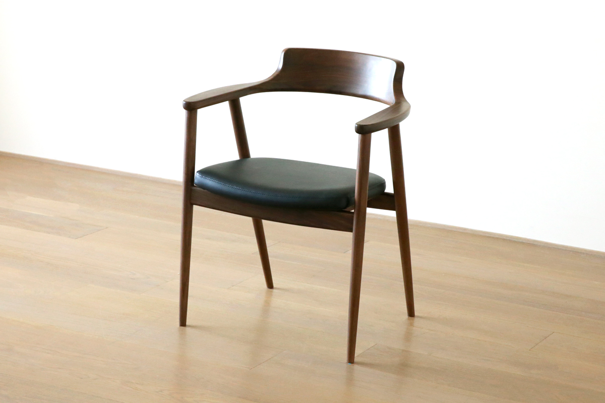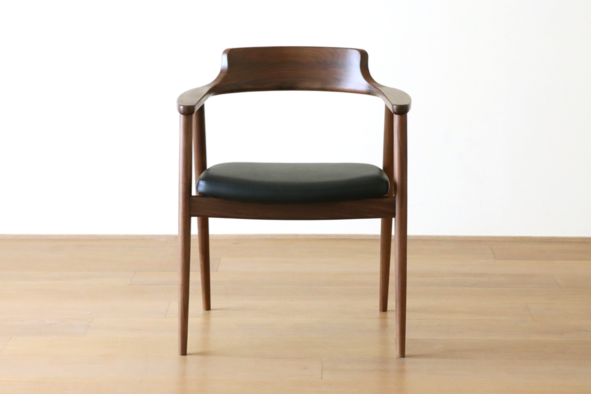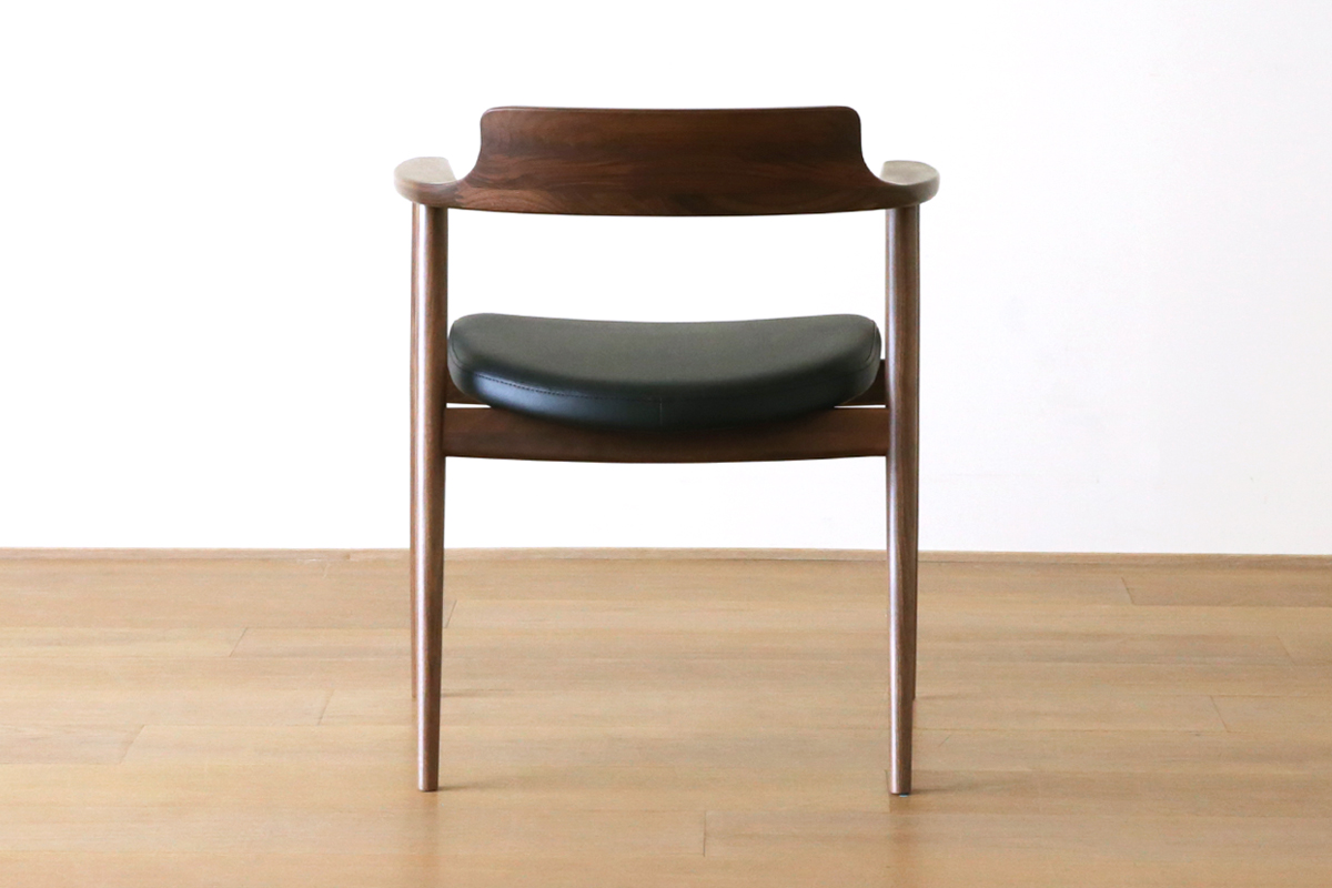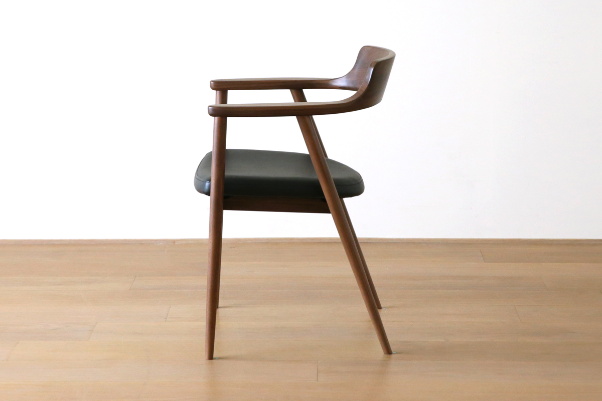 緩やかに後傾した後脚と、アームから美しく伸びる前脚は、床に向かって細くなるデザインで、軽やかかつ洗練された印象に。前後のラインがつくるコントラストがデザインに奥行きを生み、360度どこから見ても美しいフォルムに仕上がりました。