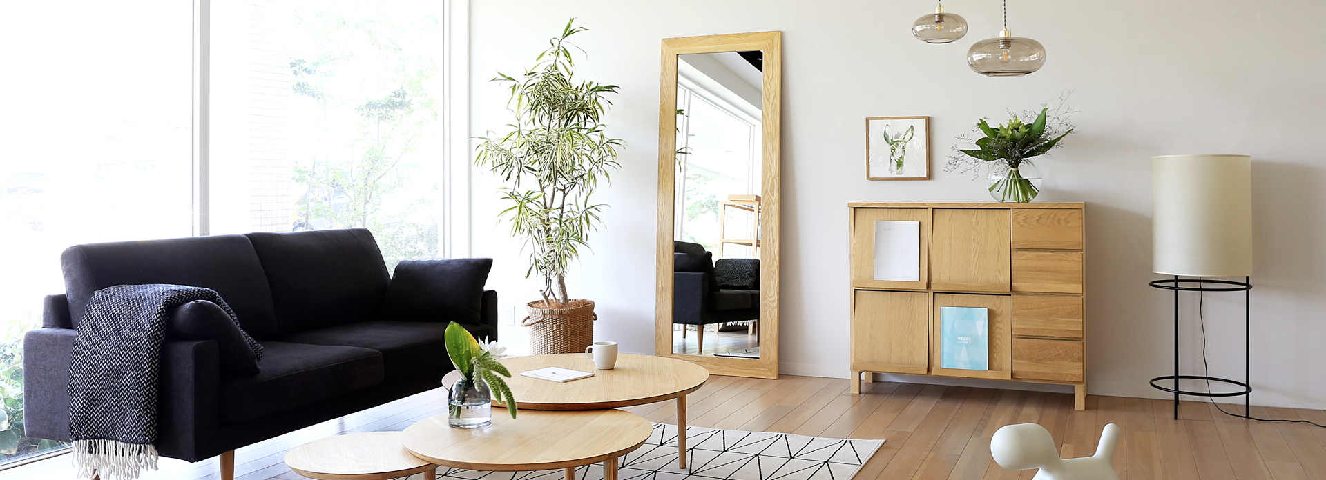 洗面台、姿見、お化粧をする時など、身だしなみをチェックする鏡。毎日向かい合う鏡を、お部屋のインテリアとして飾ってみると空間を広く見せてくれたり、小窓のような効果を取り入れたりと、おしゃれに、そして空間に役立つアイテムにもなります。