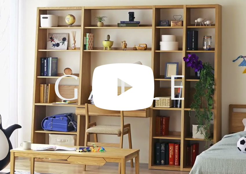 凛としたフォルムが美しいユニットタイプの書棚とデスク。インテリアをかっこよく飾る洗練されたおしゃれな空間を演出します。