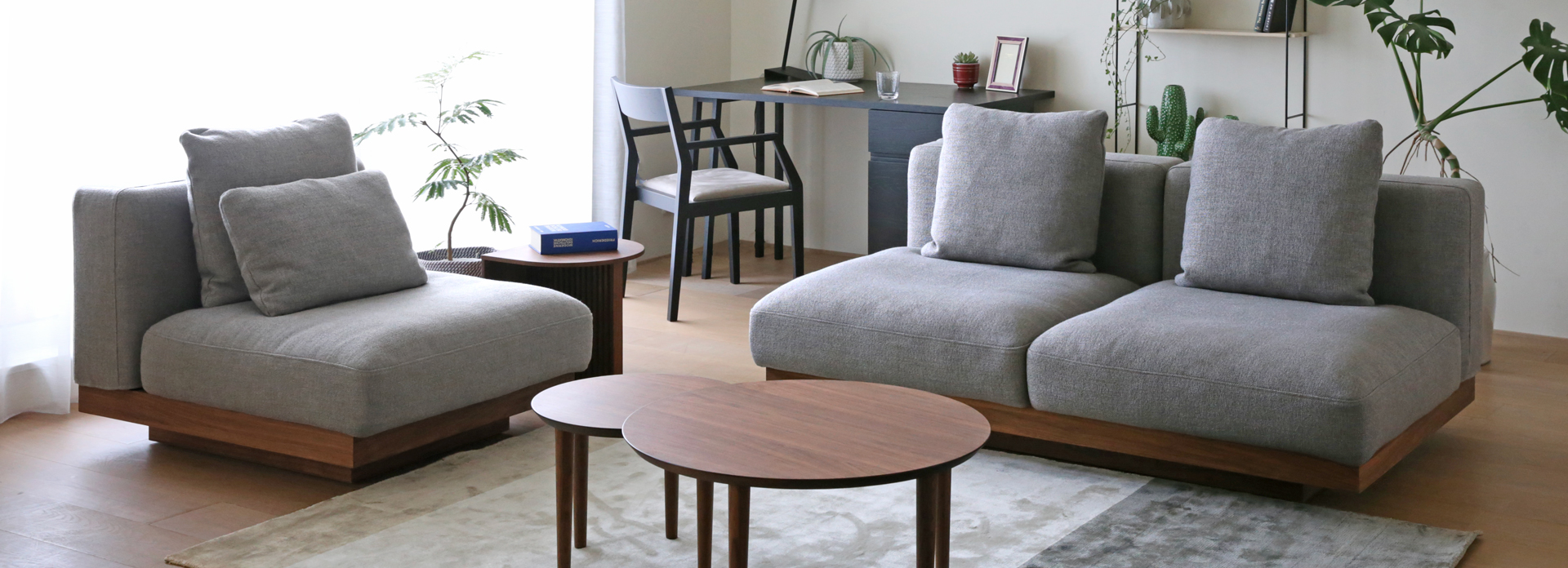 「LANA」ソファは、追加でクッションを購入することが可能です。クッションはあえてシンプルな形状で、複数合わせると、さらにゆっくりとオフタイムを過ごすことができるはずです。