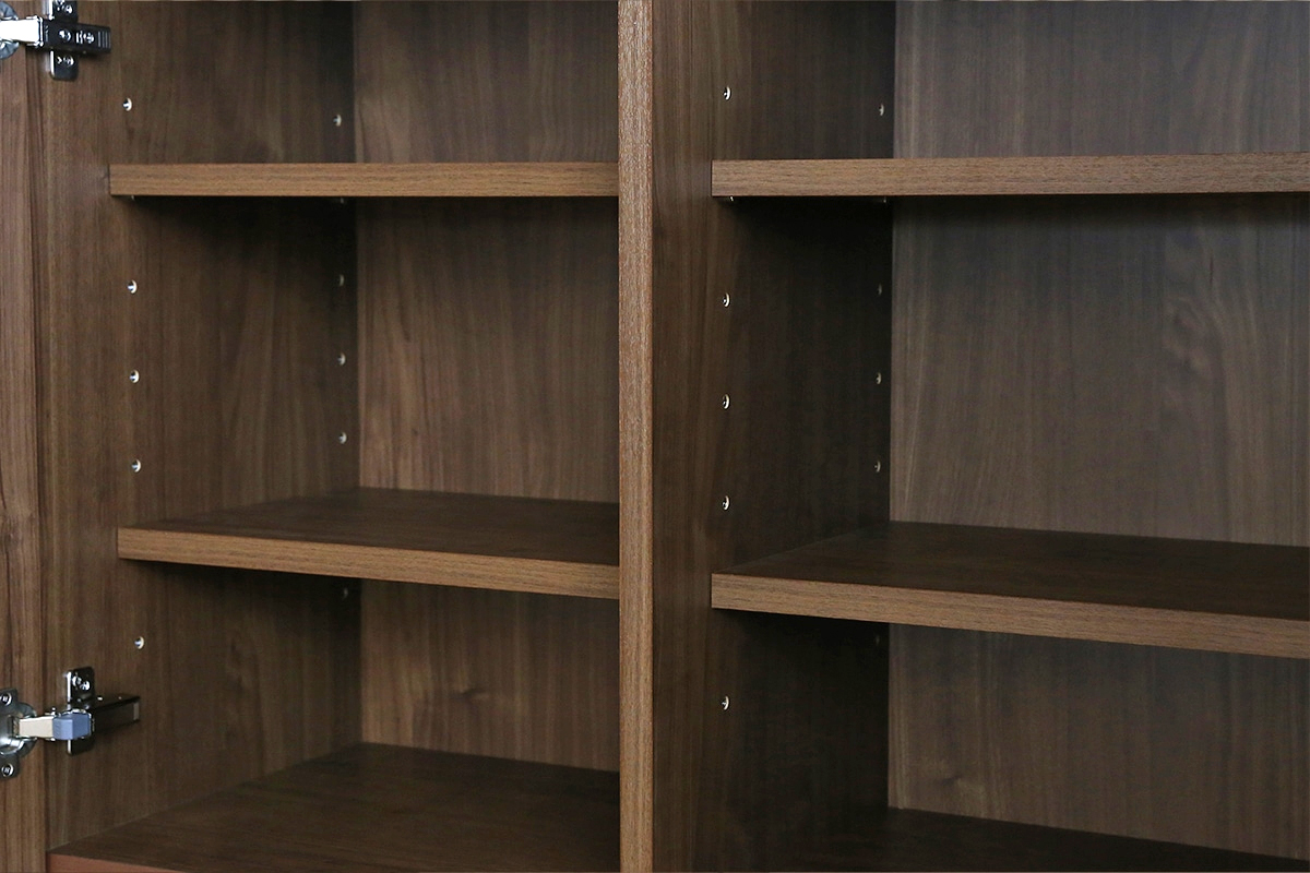 扉内には移動棚が6枚付属しています。6cmピッチで7段階の高さ調節が可能です。