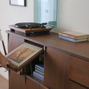 フラップ扉で見せる収納と隠す収納を上手に使い分けられるマガジンレコードラック。 表紙を正面に向けて置くのは、特に興味のある本やデザインが素敵なレコード。 ディスプレイする気持ちで、並べてみてはいかがでしょう。自分だけのギャラリーのようなコーナーができますよ。