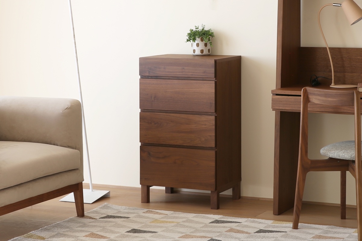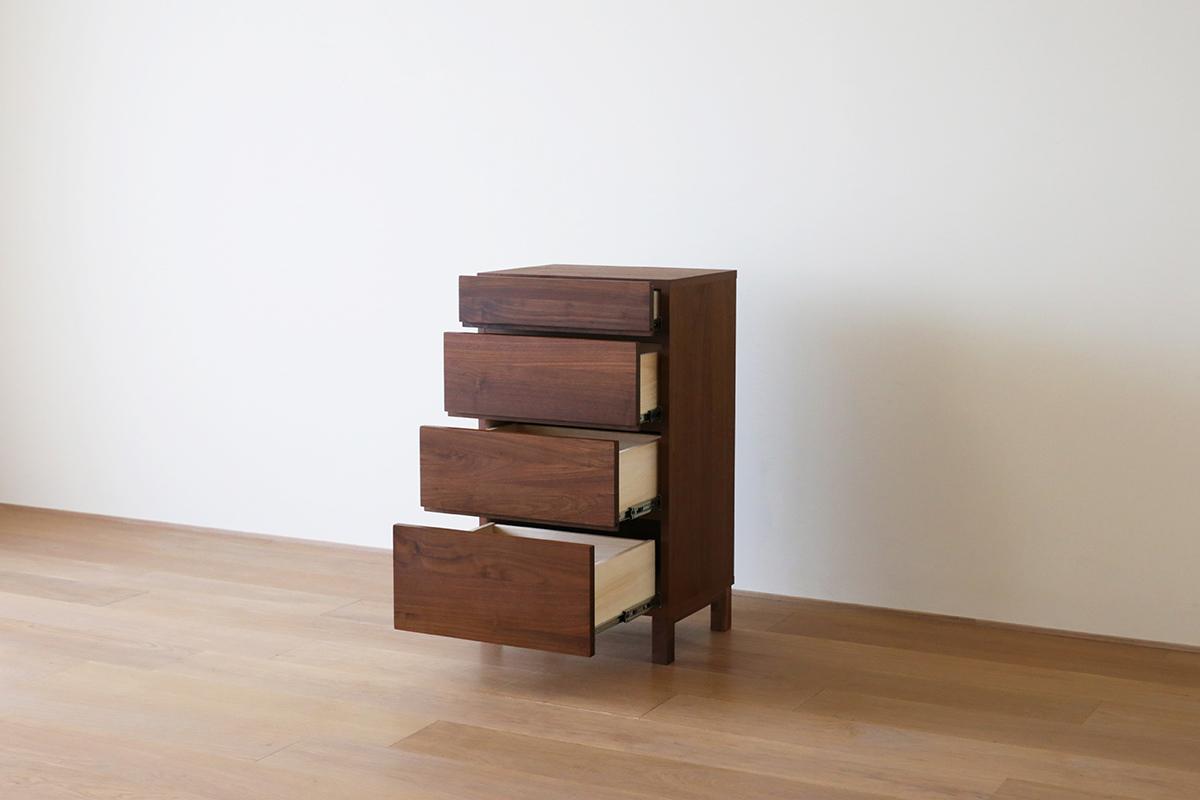 引出しは丈夫な「箱組み」仕上げです。それぞれ深さの異なる引出しを4杯設けているためさまざまな収納物に対応します。