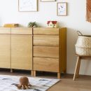 リビングではカメラなどの趣味のアイテムや書類を入れたり、洗面所周りではタオルや衣類を収納したり、中身を隠して空間をすっきりまとめてくれる「チェスト」。中が見えない分、引き出しの前板がそのままデザインにもなる家具です。ローチェストは、圧迫感がなく上部をディスプレイコーナーにすることもできるためリビング収納にも向いています。