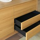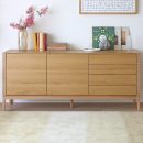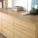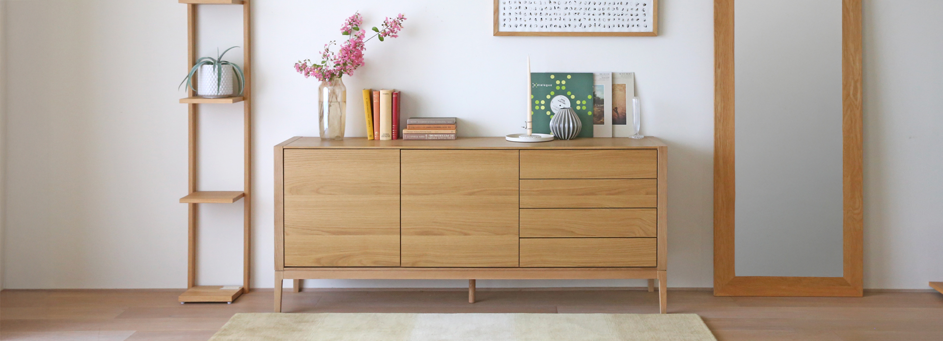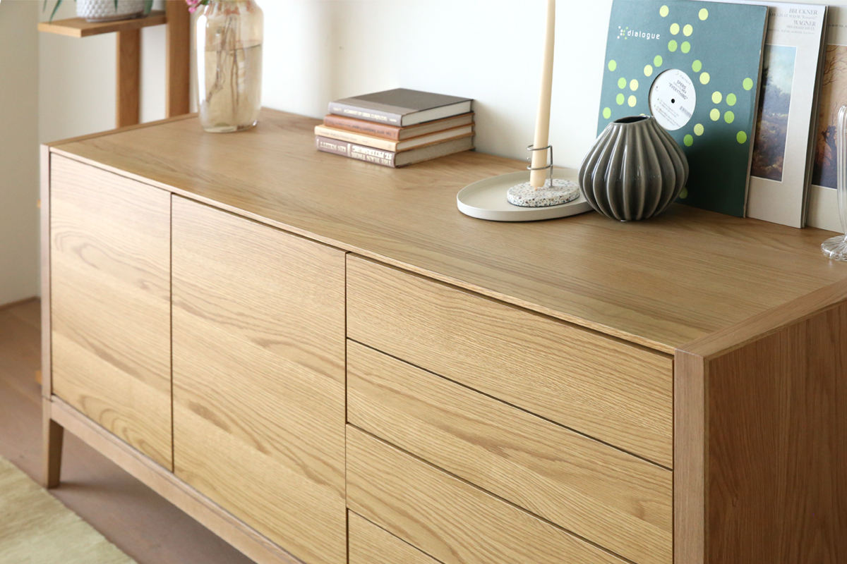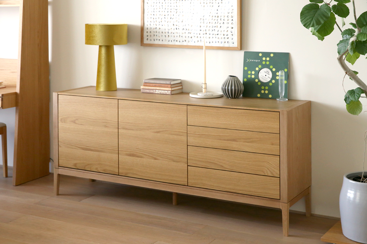 170サイドボードには、向かって右側に4段の引き出しがついています。プッシュ式になっており、取手がなくすっきりとした見た目に仕上がっています。