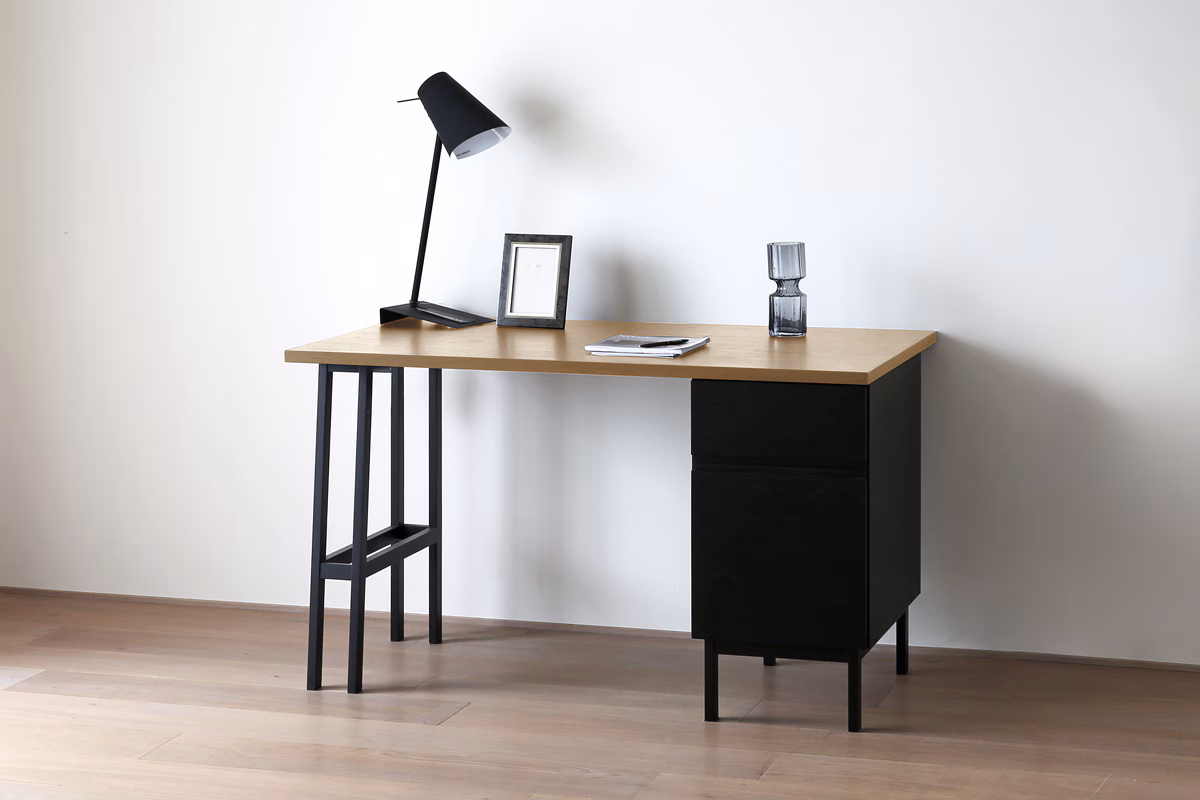 PLAIN DESK 片脚パーツ 天板奥行き 45~54cm用 OAK黒塗装 天板 D45〜54cmに使用。 【素材】 天板:無垢 【塗装】 ウレタン塗料(オイル塗装への変更可) ※オーク・ウォルナットのみ 【価格】 税込¥31,000 ご注文より6週間後の出荷です。 (長期連休前のご注文はお問合わせ下さい。) >>小冊子はこちら >>公式ウェブショップはこちら