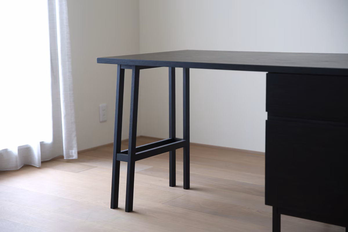 PLAIN DESK 片脚パーツ 天板奥行き 55~70cm用 OAK黒塗装 天板 D55〜70cmに使用。 【素材】 天板:無垢 【塗装】 ウレタン塗料(オイル塗装への変更可) ※オーク・ウォルナットのみ 【価格】 税込¥33,000 ご注文より6週間後の出荷です。 (長期連休前のご注文はお問合わせ下さい。) >>小冊子はこちら >>公式ウェブショップはこちら
