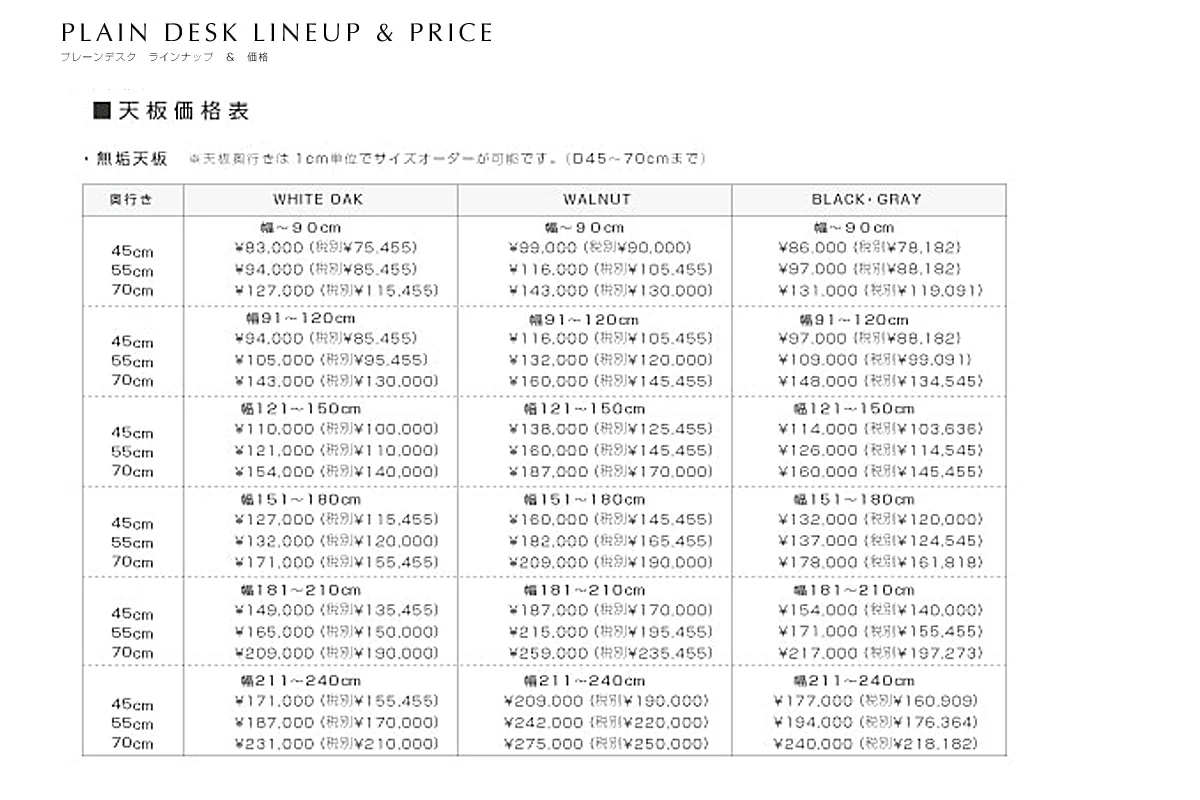 W60〜240cm D45〜70cmまで1cm単位でサイズオーダー可能です。