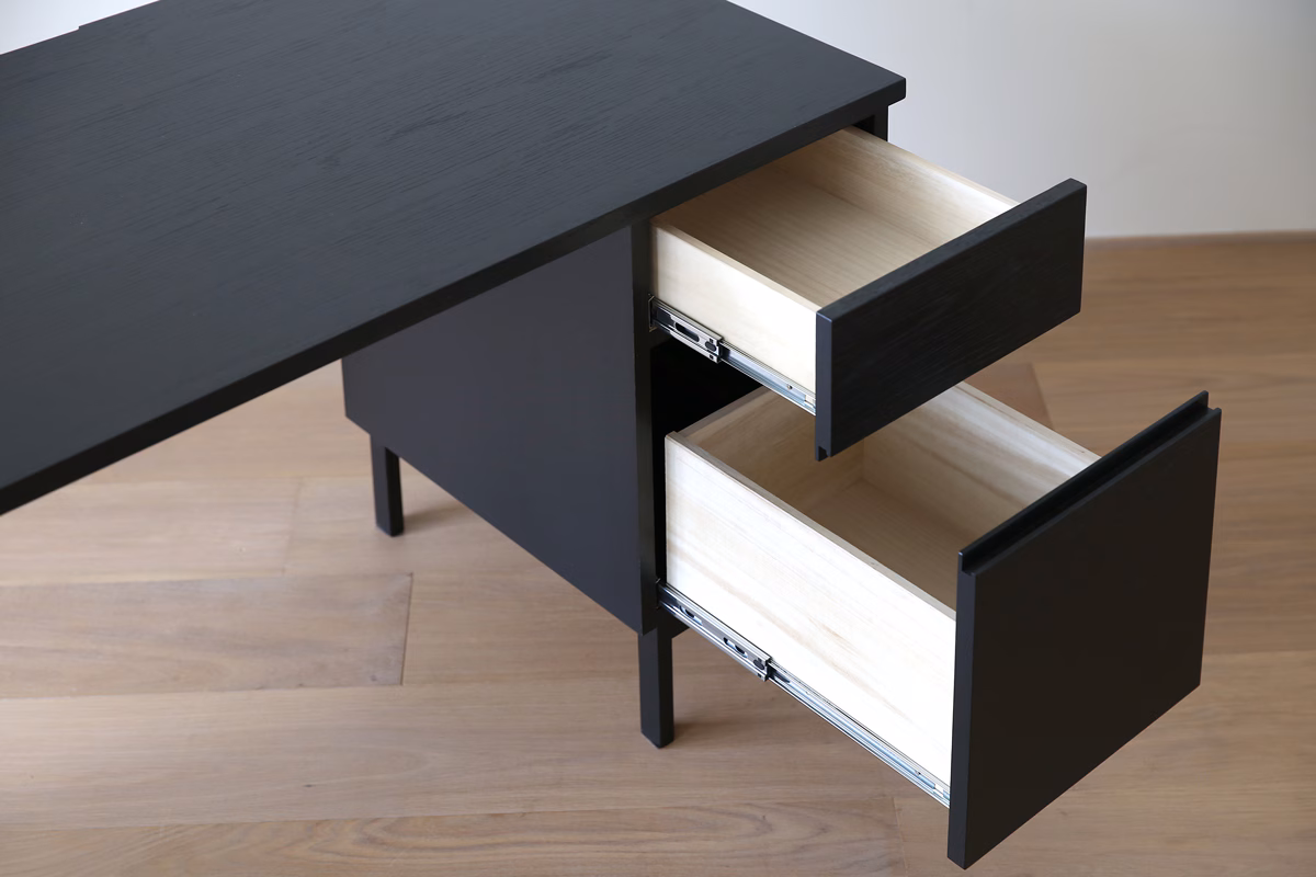 PLAIN DESK 35チェストパーツ 天板奥行き 55~70cm用 OAK黒塗装 天板 D55〜70cmに使用。 【素材】 天板:無垢 【塗装】 ウレタン塗料(オイル塗装への変更可) ※オーク・ウォルナットのみ 【価格】 税込¥65,000 ご注文より6週間後の出荷です。 (長期連休前のご注文はお問合わせ下さい。) >>小冊子はこちら >>公式ウェブショップはこちら