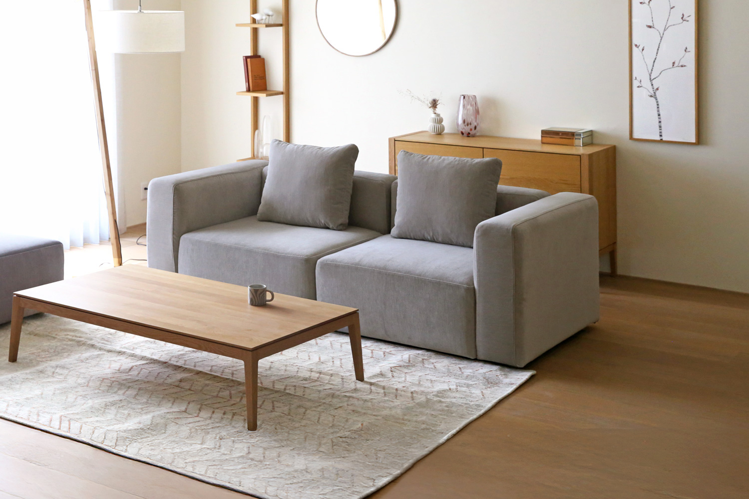 SUMOWAは、1人掛けや2人掛け、シェーズロング、コーナー、オットマンなどのモジュールで構成されているソファです。単体でも使える汎用性と、自由に組み替えられるモジュール式ならではの柔軟さが魅力。パーツの追加も可能で、模様替えや引越しにも対応します。