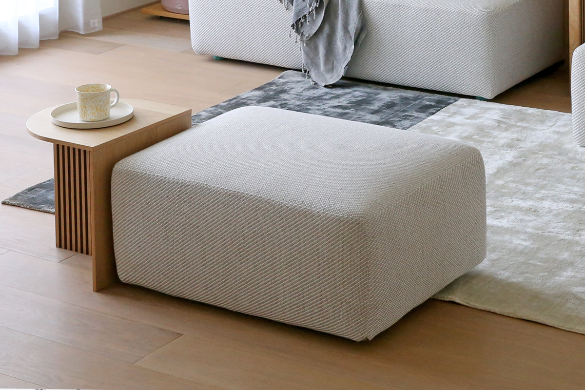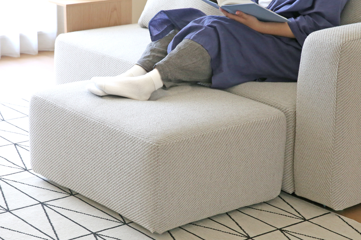 シリーズにプラスすることで、さらに贅沢なくつろぎ時間が過ごせるオットマン。心地の良い足置きとしてはもちろん、そのまま寝転がったり、来客用のスツールとして使えたり、センターテーブルとしても活躍したりと、その使い道は様々。「大きなソファーには憧れるけれど、模様替えや引っ越しが多くていつまで使えるか不安」という方でも、取り回しの良いオットマンなら、暮らしの形に合わせて長くお使いいただけます。