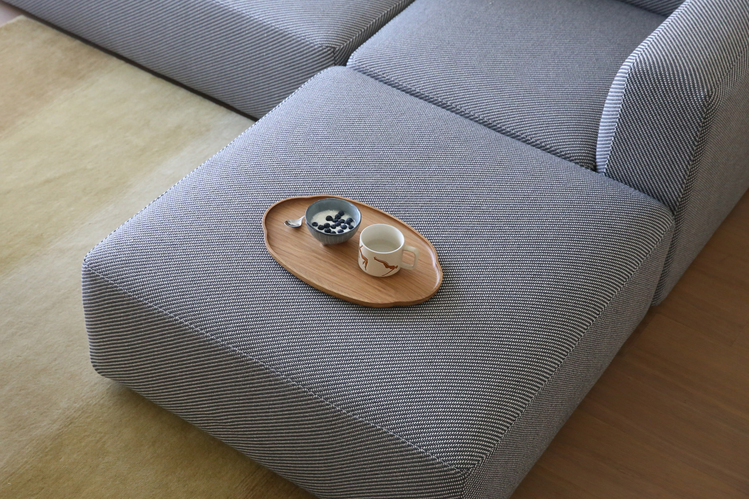 SUMOWAは、1人掛けや2人掛け、シェーズロング、コーナー、オットマンなどのモジュールで構成されているソファです。単体でも使える汎用性と、自由に組み替えられるモジュール式ならではの柔軟さが魅力。パーツの追加も可能で、模様替えや引越しにも対応します。